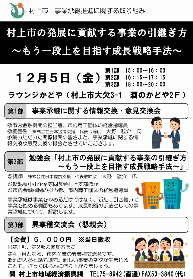 村上市の発展に貢献する事業の引継ぎ方~もう一段上を目指す成長戦略手法~